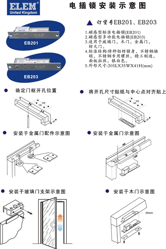 ELEM EB203磁感型多功能电插锁安装说明书,视频,维修保养服务中心价格